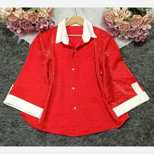 🍉❤️ شومیز یلدایی قرمز – خاصِ خاصها! ❤️🍉 اگه دنبال یه استایل شیک و متفاوت برای شب یلدا هستی، این شومیز جذاب دقیقاً همون چیزیه که میخوای! ترکیب قرمز یلدایی با یقه و سرآستینهای سفید ظاهرش رو فوقالعاده چشمگیر کرده و مدل آزاد و راحتش باعث میشه هم تو عکسها بدرخشی هم تو مهمونی راحت باشی. ✨ ویژگیها: پارچه براق و خوشفرم دوخت تمیز و کاملاً خوشتن مدل دکمهدار کلاسیک و مجلسی مناسب شب یلدا، دورهمیها و استایلهای شیک پاییزی/زمستونی اگه میخوای توی یلدا امسال خاصترین باشی، این شومیز انتخابت باشه! ❤️🌙