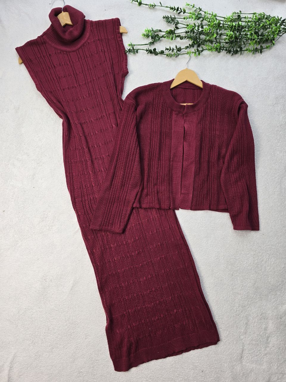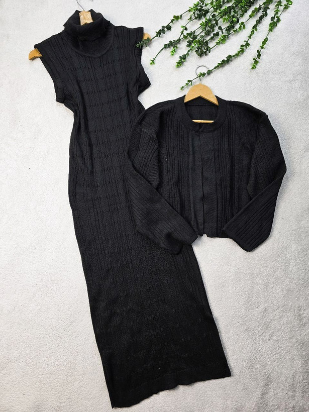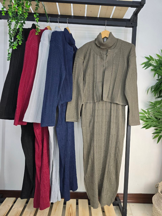 ست دو تکه بافت سارافون یقه اسکی و کت رویه