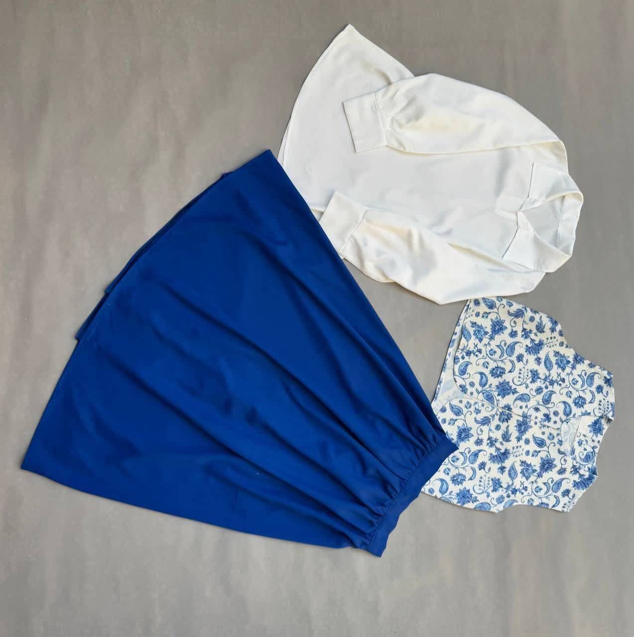 🧵جنس : جلیقه موهر سانتانا لطیف درجه یک شومیز کرپ درجه یک ،دامن کرپ درجه یک سبک ریزش دار