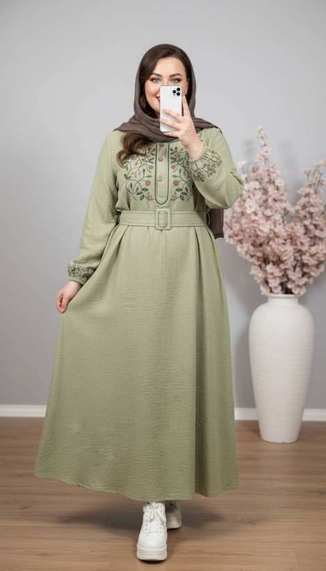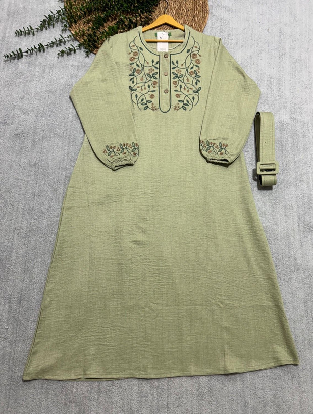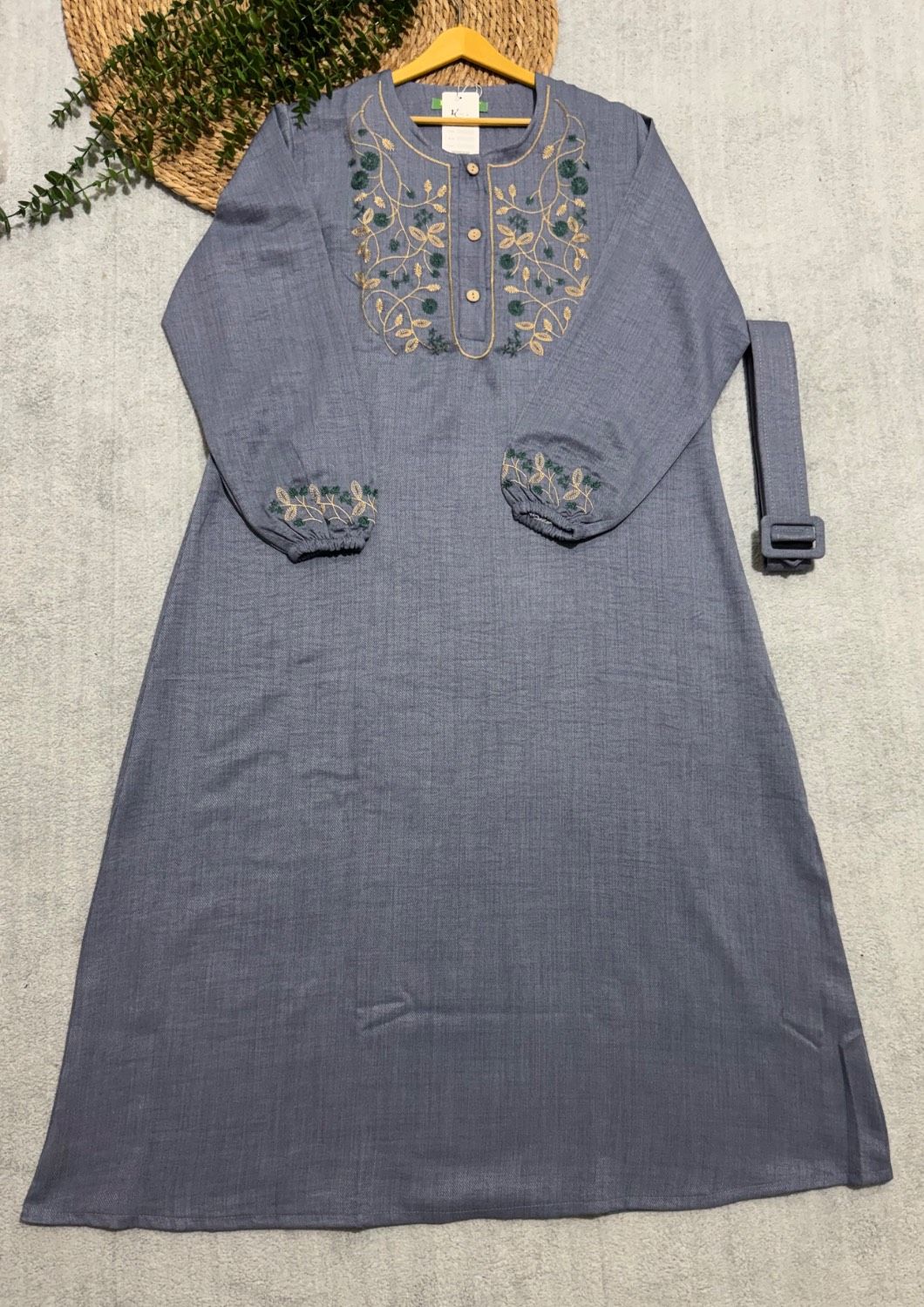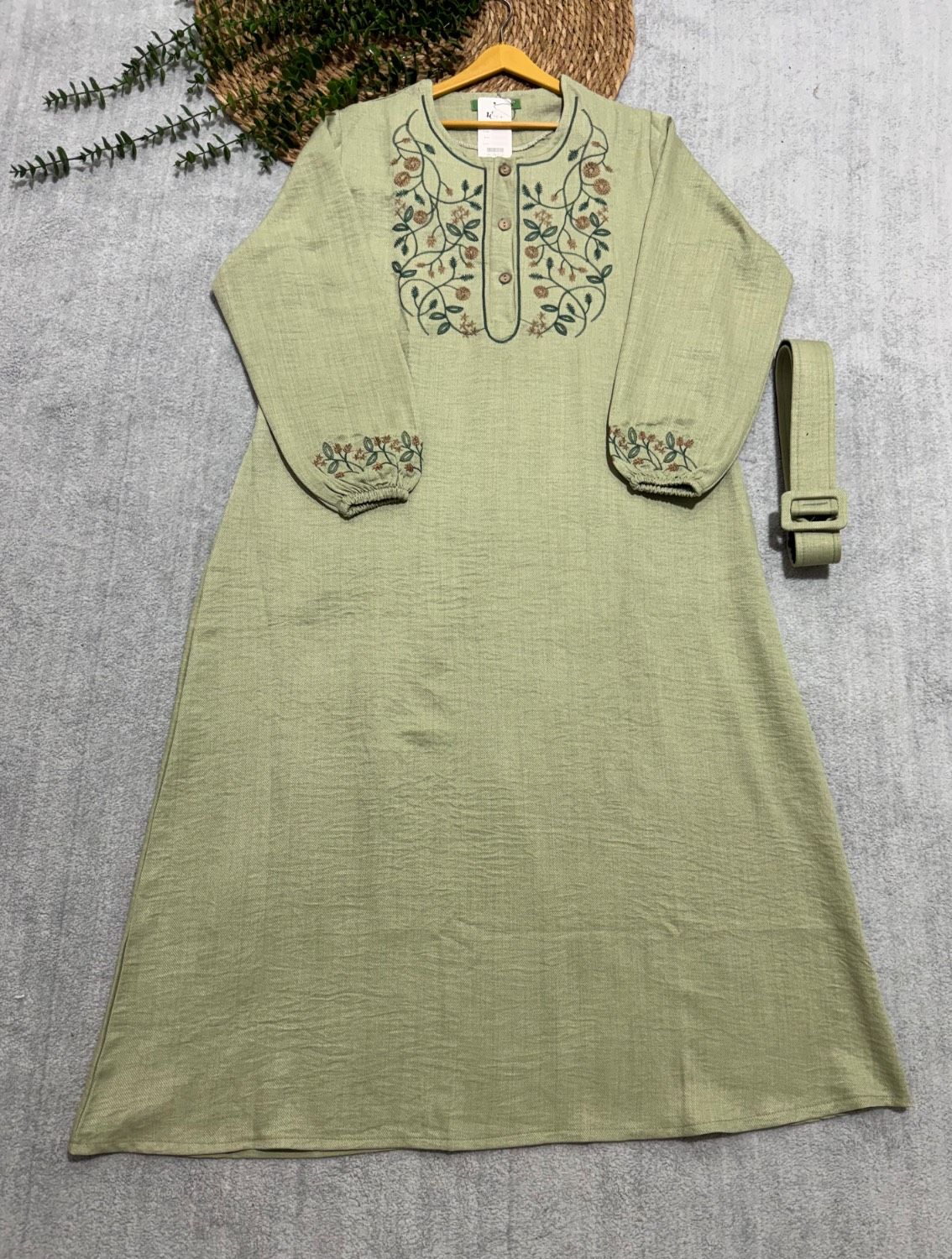 💎 نام: پیراهن مانتویی مدل برگ همراه کمربندخشک با ایستایی بالا