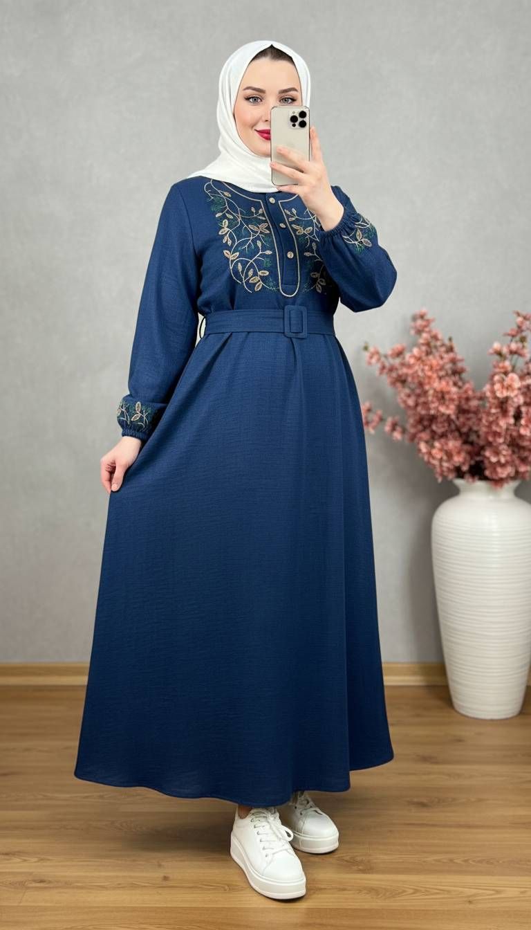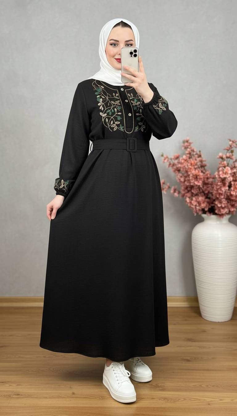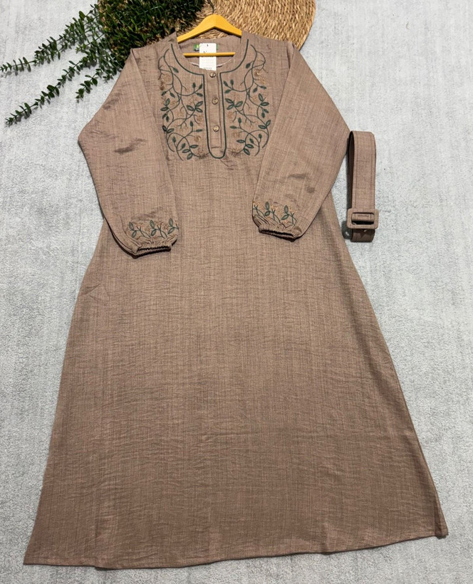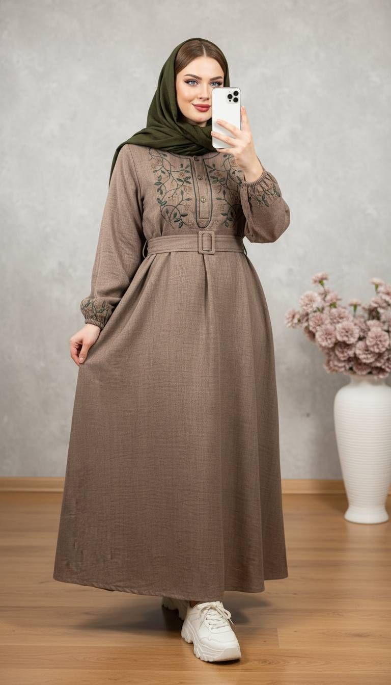 💎 نام: پیراهن مانتویی مدل برگ همراه کمربندخشک با ایستایی بالا
