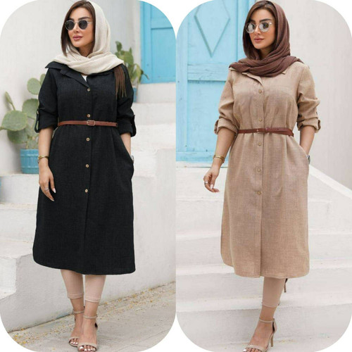 مانتو بارونی رخسار جنس کتان زار درجه یک