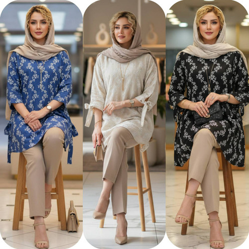 ست سه تیکه پارسین جنس شانتون گازوئیلی درجه یک شومیز داکرون زنانه